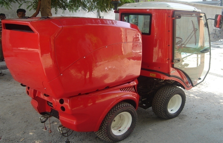 The assignment was to integrate a grass collecting storage container with the existing front drivers cabin. The container was to be lifted by a hydraulic system and the collected grass emptied onto a garbage collecting truck.