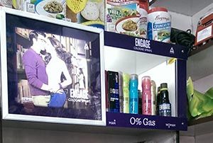 Titch-Pitch can create a variety of window configurations and styles. Take over a single shelf or dominate an entire bay. Create a backlit show stopper or simply a window of brand clarity amidst the surrounding chaos.